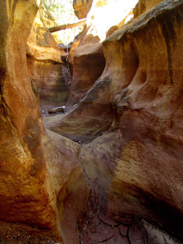 middle of the slot canyon section without ropes. This route is down Bear Trail and under the