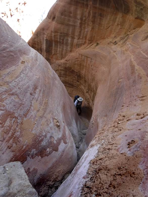 Sandstone slot below the high rappel...