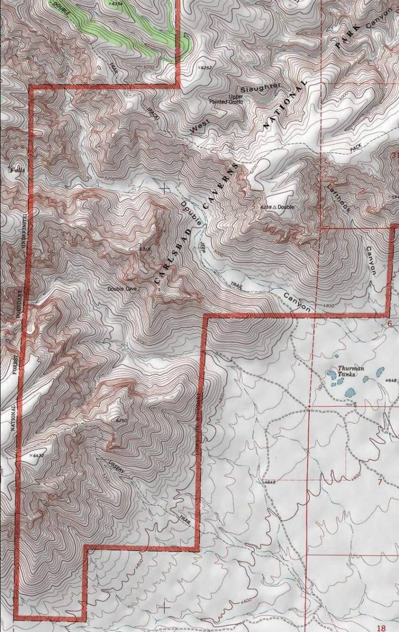 boundary of Carlsbad Caverns National Park. We are told that this is a dry pour-over that only flows