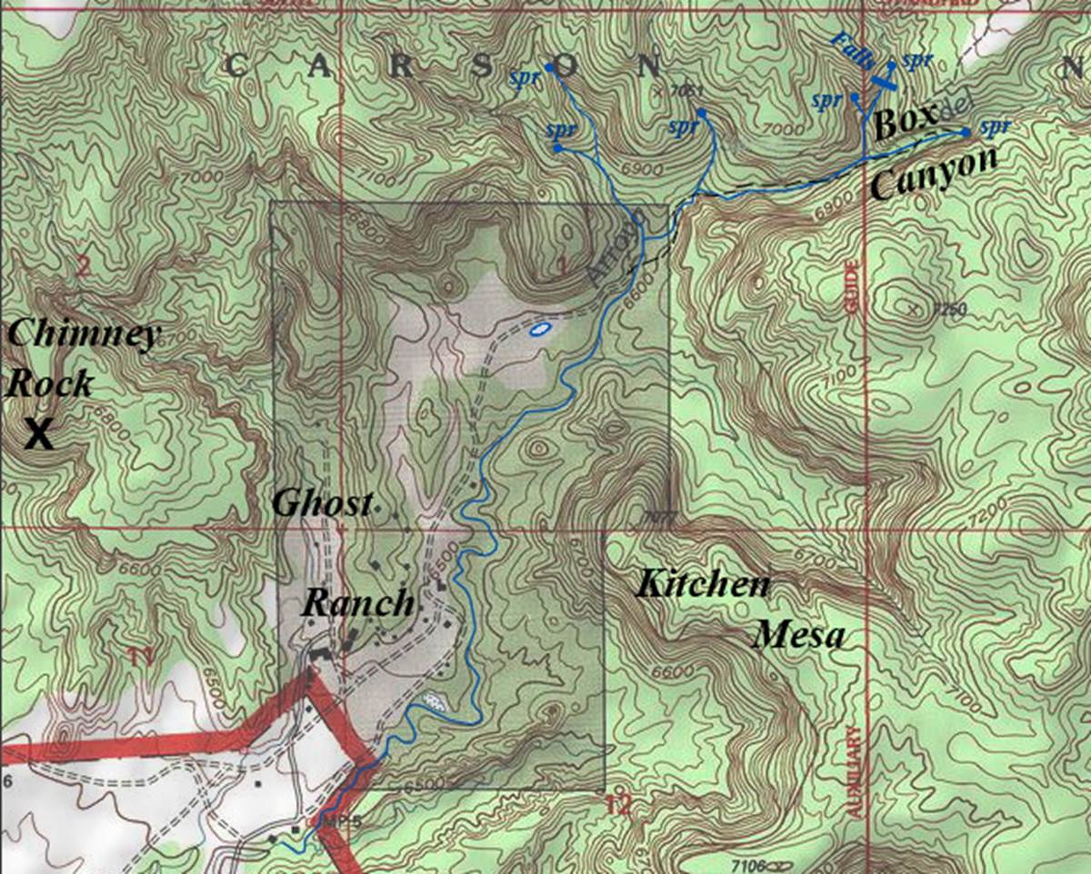 nearest town- Ghost Ranch is about 12 miles